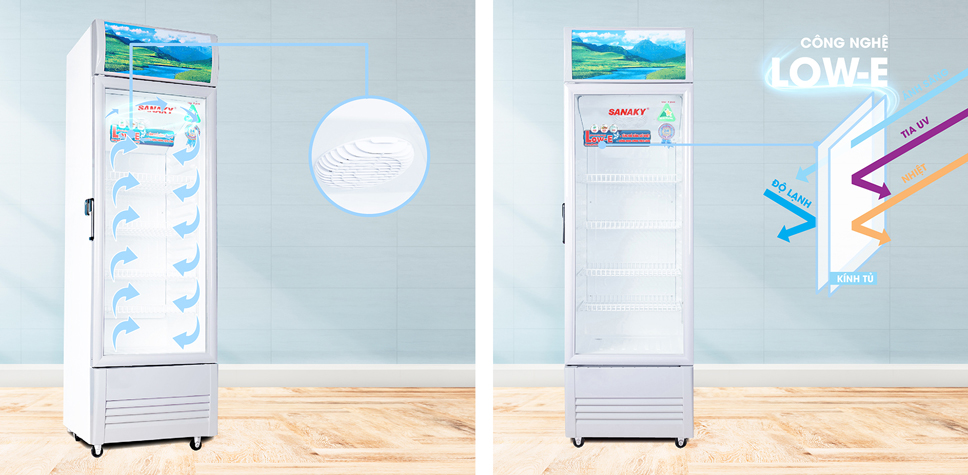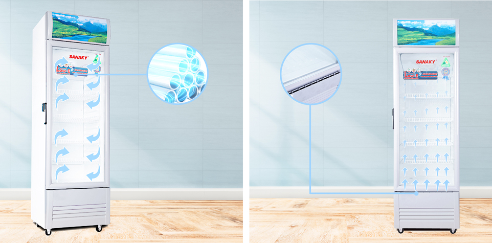 tủ mát Sanaky VH-408KL Dàn lạnh bằng nhôm, Hệ thống sưởi kính hiện đại, giảm hẳn hiện tượng đồ mồ hôi mặt kính